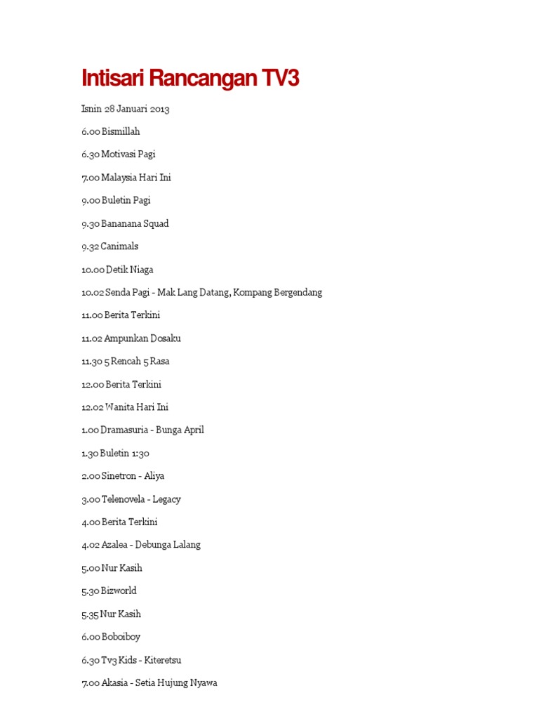 Intisari Rancangan Tv1 Hari Ini 2018 from imgx.motorplus-online.com Baca intisari rancangan tv3 dan jawab soalan yang diberikan. Bersama barisan hos anda seperti fiza sabjahan, fahrin ahmad. Woody woodpecker toon disney : Rtm tv1 intisari rancangan 2 2018 ident break bumper. Disneys kim possible tv3 kids news nickelodeon: Hafiz izzuddin zainudin 8 year ago download. 13 episod tarikh tayangan : Semoga hari ini lebih baik daripada semalam.