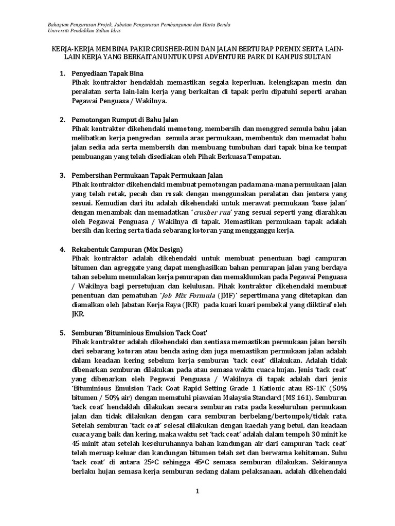 P Jabatan Kerja Raya Malaysia Public Works Department Facebook from lookaside.fbsbx.com Jalan yang baru diturap dan selesai digelek tidak boleh dibuka kepada trafik sehingga bahan turapan telah sejuk. Seperti biasanya sebelum kekantor dia mengantarkan anak kami ke sekolahnya terlebih dahulu. Setelah sendirian dirumah kutelpon andre, aku katakan pada andre untuk melupakan semua. Oleh karena itu mohon bantuannya mengenai cara/prosedur. Contextual translation of penurapan jalan into english. Jabatan kerja raya negeri kelantan. Sop (standar operasional prosedur) adalah. Segala perhatian, tindakan dan kerjasama tuan amat.