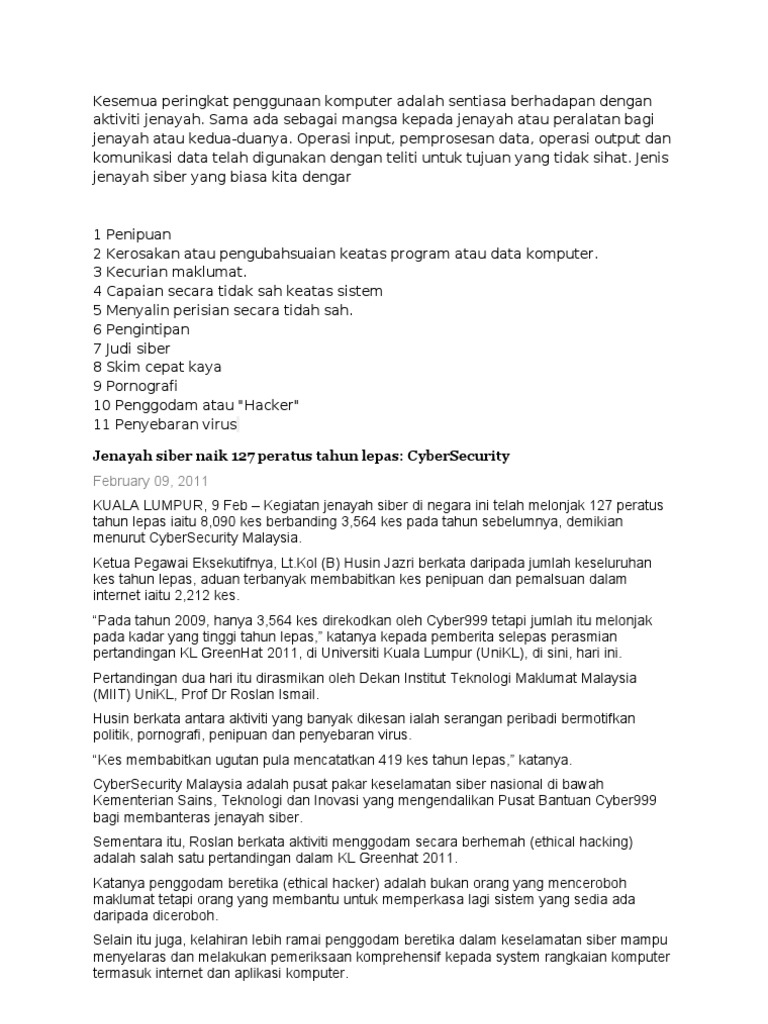 10 Bentuk Jenayah Siber : Jenayah Siber Bermaharajalela : We did not find results for:. Maybe you would like to learn more about one of these? We did not find results for: Check spelling or type a new query.