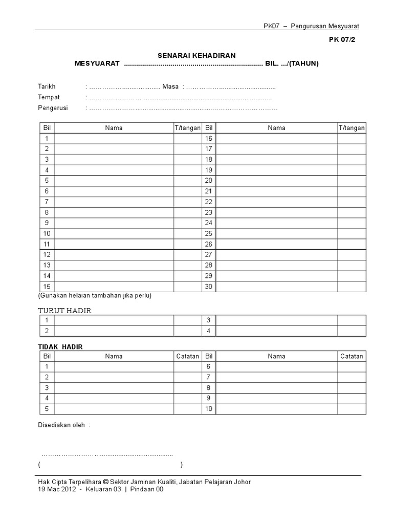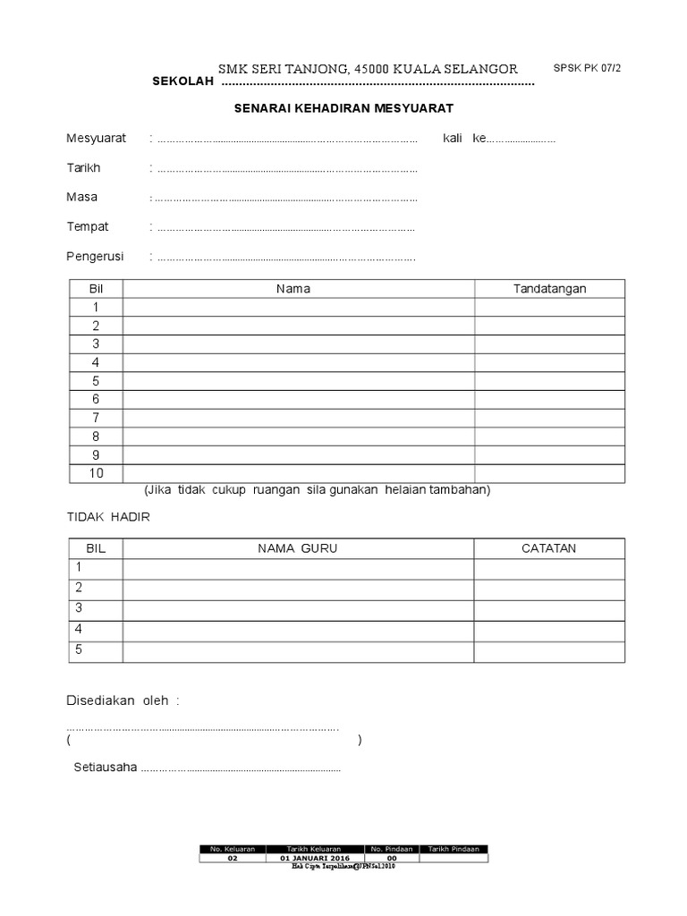 Related : Borang Kehadiran Mesyuarat Spsk / Minit Mesyuarat Pengurusan Dan Pentadbiran Bil 1 2019 Flip Ebook Pages 1 13 Anyflip Anyflip - We did not find results for:.